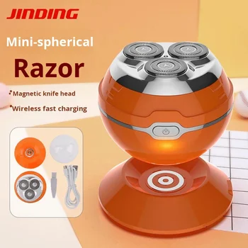 JinDing New Mini Men's Electric Shaver USB Wireless Waterproof Washable Triple Blade Rotary Face & Body Shaver Spherical